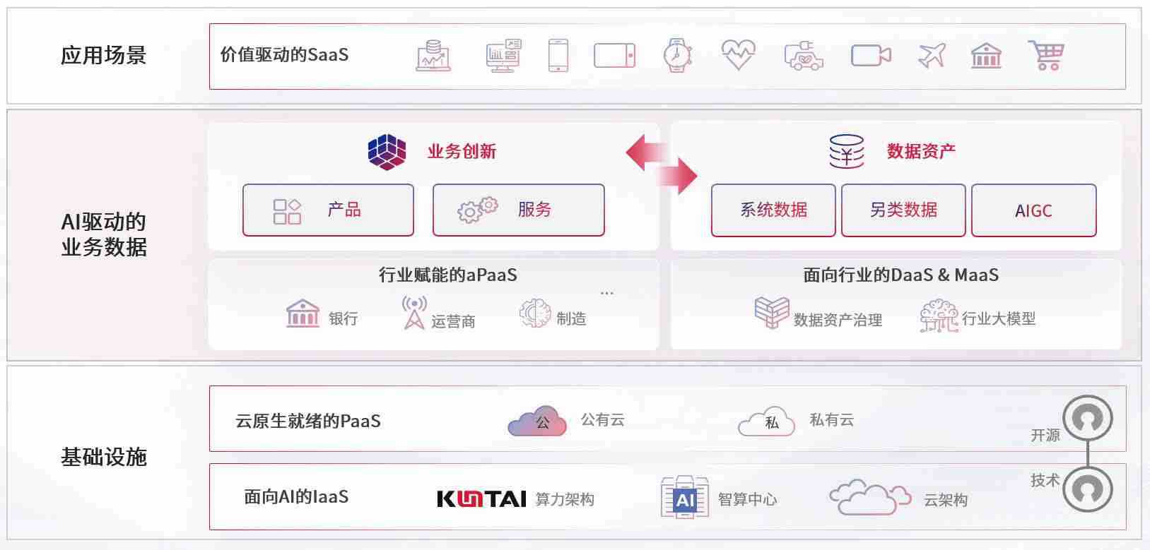 数字时代,,围绕企业数字化转型的关键要素,,,,k宝钱包数码开创性的提出数云融合战略和技术体系框架,,,着力在云原生、、数字原生、、、AI原生和信创产业上架构产品和服务能力,,,为处在不同数字化转型阶段的快消零售、、汽车、、、、金融、、医疗、、、、政企、、教育、、、、运营商等行业客户提供泛在的敏捷IT能力和融合的数据驱动能力,,构建跨界融合创新的数字业务场景和新业务模式,,,助力企业级客户建立面向未来的核心能力和竞争优势,,,,全面推动社会的数字化、、、智能化转型升级。。。